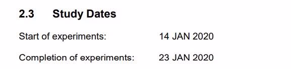BioNTech R+D INFORME D'ESTUDI Núm. R-20-0072 està disponible aquí. L'informe també es fa referència i es discuteix en una presentació de la FDA sobre el programa d'estudis preclínics disponible aquí. La captura de pantalla següent mostra les dates de l'estudi de la p. 8 de l'informe.