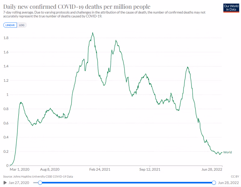 La immunitat postinfecció és efectiu per mitigar la COVID-19, i encara més que la vacunació sola. Les enquestes serològiques indiquen que la majoria de les persones van obtenir immunitat després de la infecció a mitjans i finals del 2021. Com taxes d'infecció són major de Les taxes de vacunació de gran part de la població mundial, s'espera que la immunitat post-infecció tingui un paper més important que la vacunació en la reducció de la mortalitat posterior. El continent africà, amb la taxa de vacunació més baixa, té la taxa de mortalitat més baixa – una relació multifactorial però que hauria d'haver donat el Llanceta, The Economist, i qualsevol persona pensant fa una pausa per pensar.