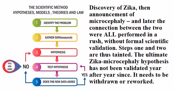 Des d'un inici abrupte fins a un final indistint, la història del Zika i la microcefàlia està plena de casos en què no es va seguir ni respectar el mètode científic. Els dos episodis de "ciència per filtració de premsa" recorden la debacle de la "fusió freda". Almenys en aquest cas, la premsa es va recuperar i es va reexaminar.